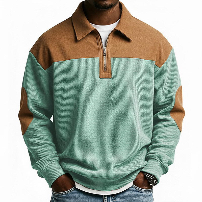 Men's Polo Corduroy Shirt Vacation Street Quarter Zip Long Sleeve Fashion Basic Color Block Patchwork Color Block Spring Fall Regular Fit Black Navy Blue Green Grey Light Blue Polo