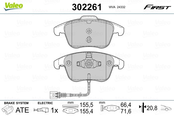 Jarrupalasarja, levyjarru, Etuakseli Valeo 302261 - audi q3, seat alhambra, vw sharan, tiguan - OE 5N0698151, 5N0698151A, 5N0698151B