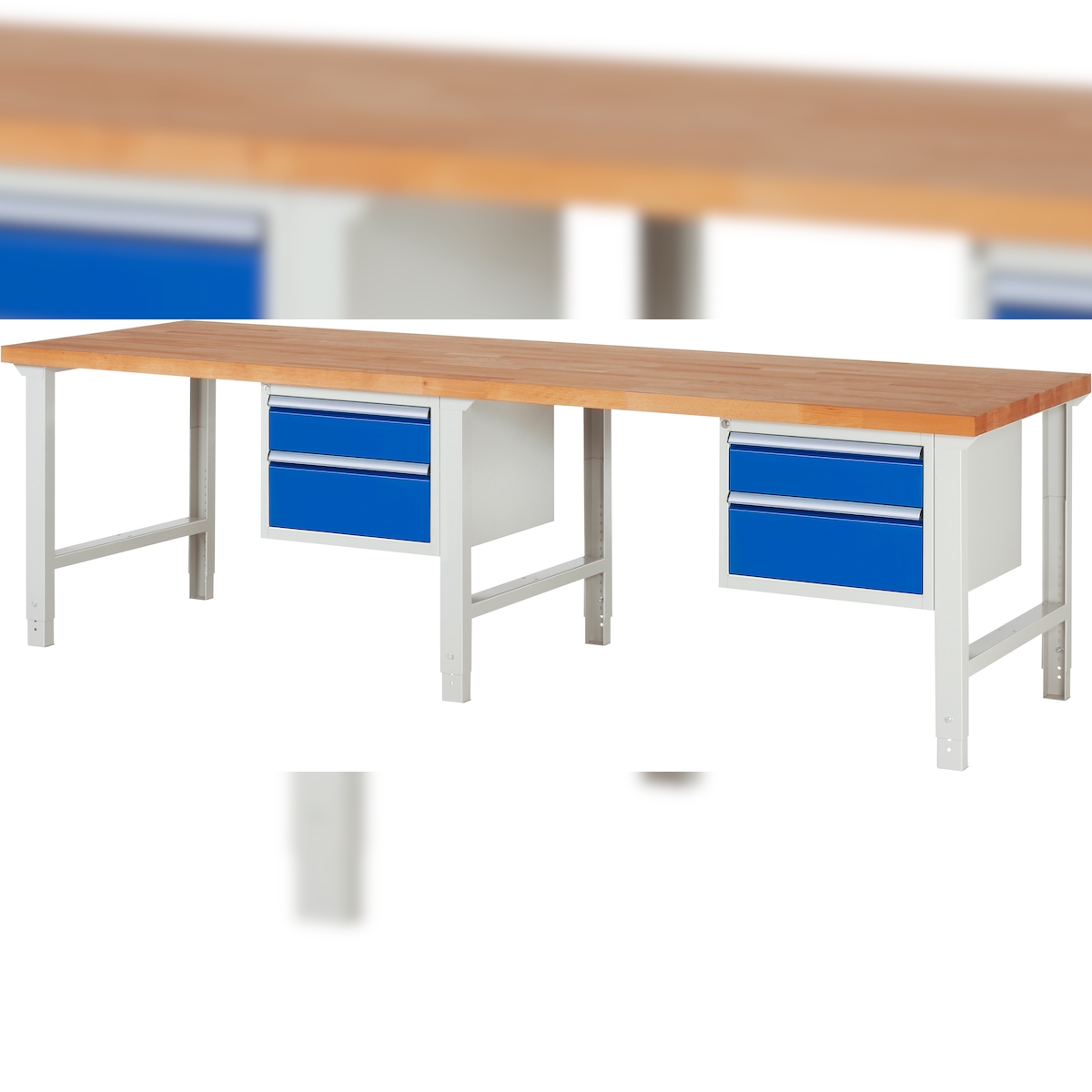 PROREGAL Werkbank Serie 7000 - Modell 7123 | HxBxT 79-114x300x90cm | 4x Schublade | Schubladenmaße 2x150 + 2x210mm