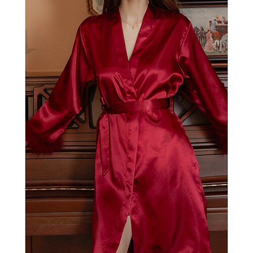 Per donna Accappatoio Casual Morbido Raso Colore Puro Piuma Quotidiano Casa Da letto Manica Lunga Scollo a V Nero Bianco Champagne Rosa Vino Estate Vestibilità regolare