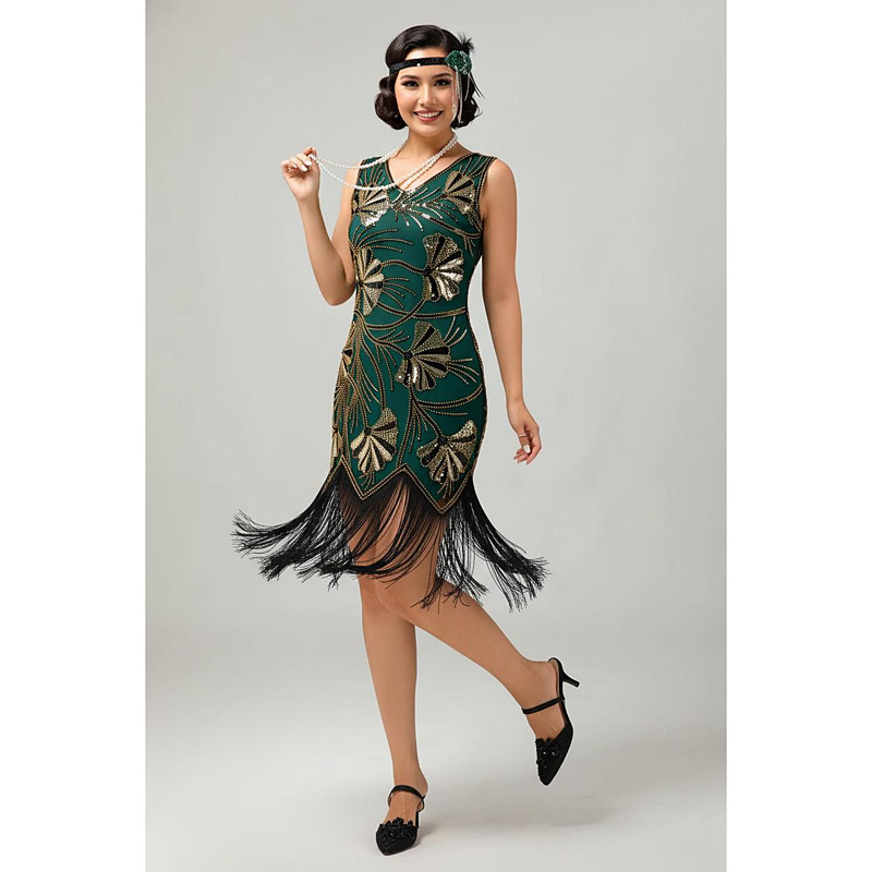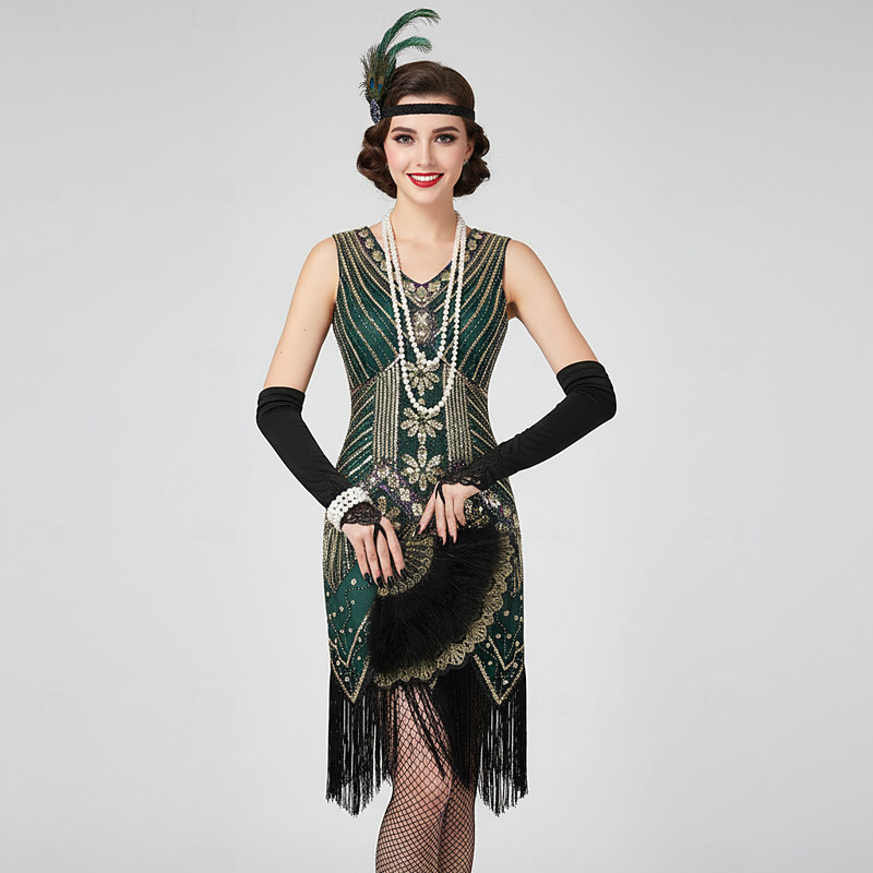 Set Roaring 20s 1920s Cocktail Dress Mini Flapper Dress Dress Outfits with Accessories Sleeveless The Great Gatsby Plus Size Wedding Guest V Neck Fancy Dress Women's Carnival Masquerade Party Evening