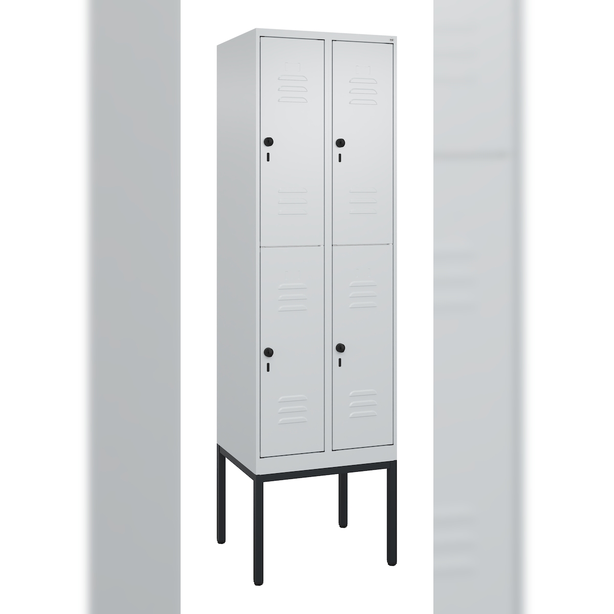 C+P Spind Classic PLUS, Füßen, 4 Abteile, HxBxT 195x120x50cm, Sicherheitsdrehriegel, Hellgrau/Hellgrau von PROREGAL