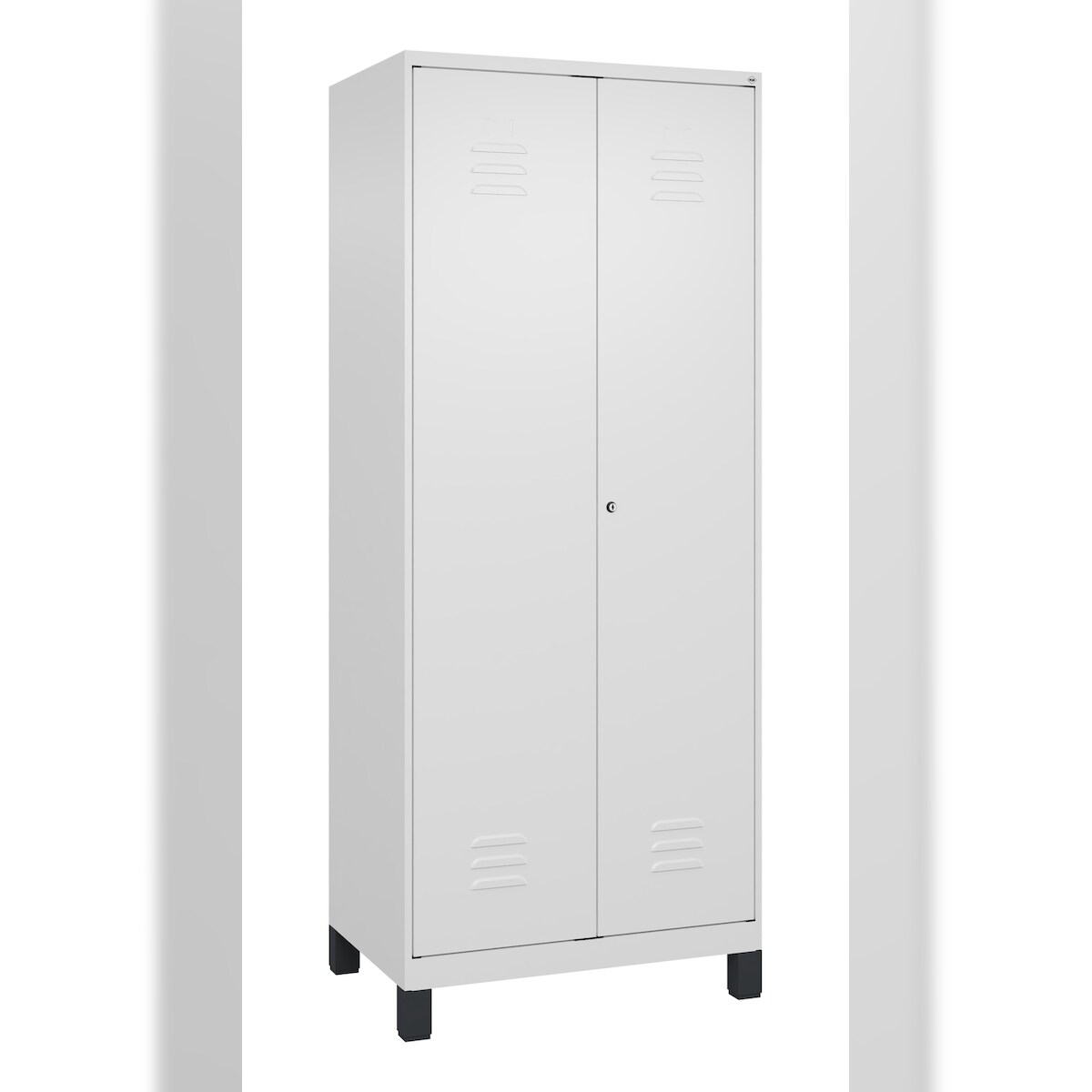 C+P Aufbewahrungs Doppel-Spind Classic PLUS, Füßen, 2 Abteile, 4 Fachböden, HxBxT 195x80x50cm, Zylinderschloss, Verkehrsweiß von PROREGAL