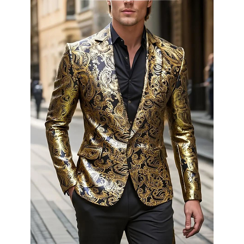 Men's Blazer Jacket Shawl Collar Party Floral Blazer Multicolor Slim Fit Single Breasted One-button