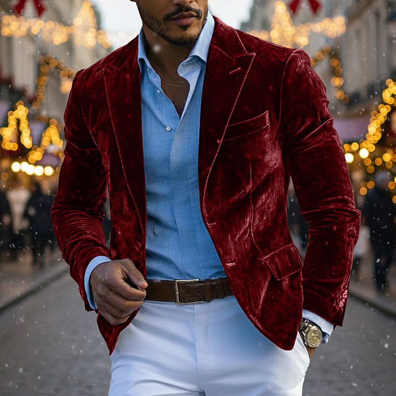 Men's Velvet Blazer Jacket Closure collar Christmas Fashion Party Solid Colored Blazer Red Blue Green Slim Fit Single Breasted Two-buttons