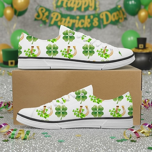 Sneakers casual in tela da donna a tema irlandese per San Patrizio: scarpe traspiranti con lacci per le vacanze, perfette per passeggiate, feste, viaggi e abbigliamento primaverile quotidiano