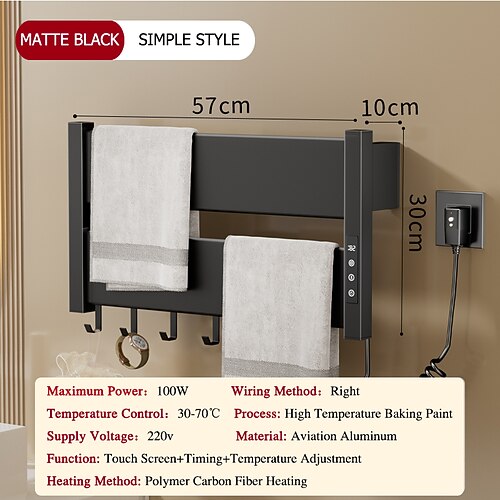 scaldasalviette elettrico a parete con timer e regolazioni multi-livello della temperatura cablato e plug-in riscaldamento rapido adorabile moderno e contemporaneo in alluminio 1pz
