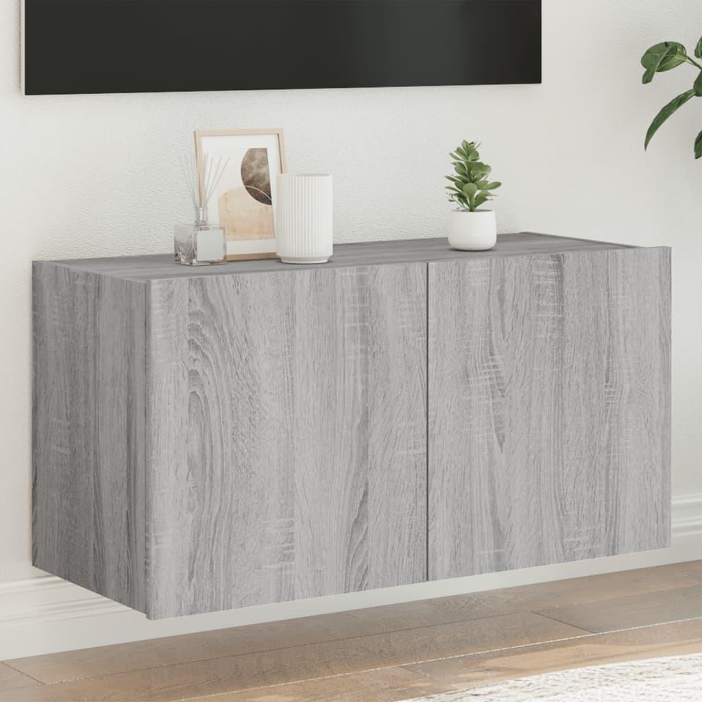 Væghængt tv-bord m. LED-lys 80x35x41 cm grå sonoma-eg