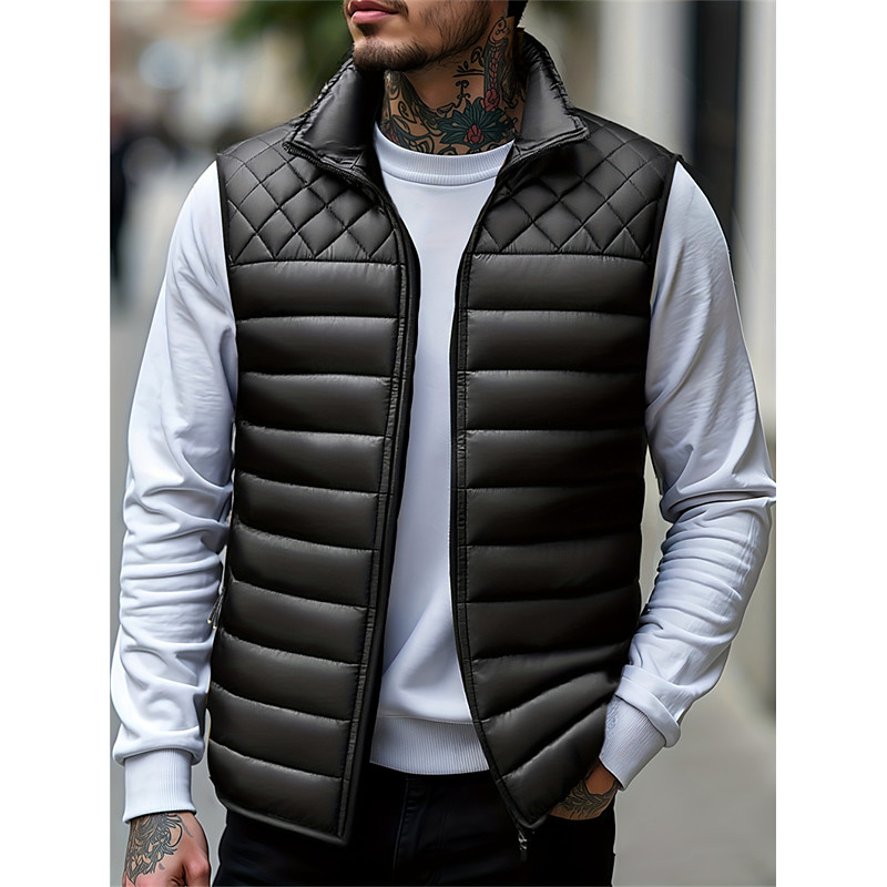 Men's Puffer Vest Vest Gilet Vacation Daily Date Fashion Casual Fall Winter Pocket Polyester Warm Comfortable Solid Color Zipper Stand Collar Regular Fit Blue Black Gray Vest