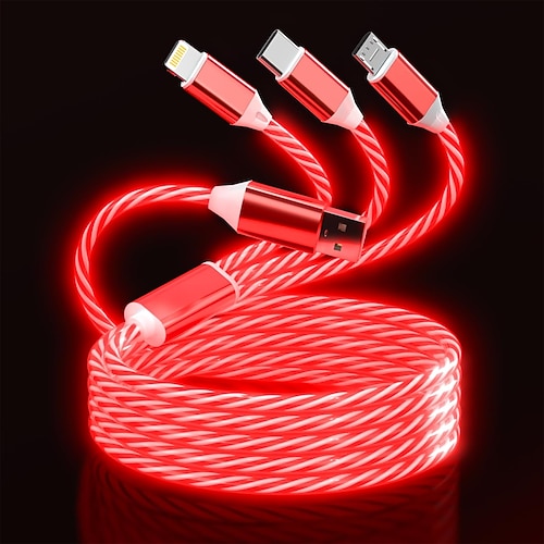Cavo di ricarica luminoso 3 in 1, cavo di ricarica multi-led, cavo di ricarica luminoso, cavo USB 3A, compatibile con la maggior parte degli smartphone