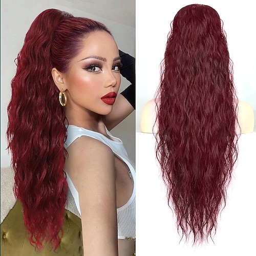 coda di cavallo riccia ondulata estensione coda di cavallo lunga 26 pollici nera con coulisse per donna clip in coda di cavallo parrucchino sintetico naturale spesso per l'uso quotidiano