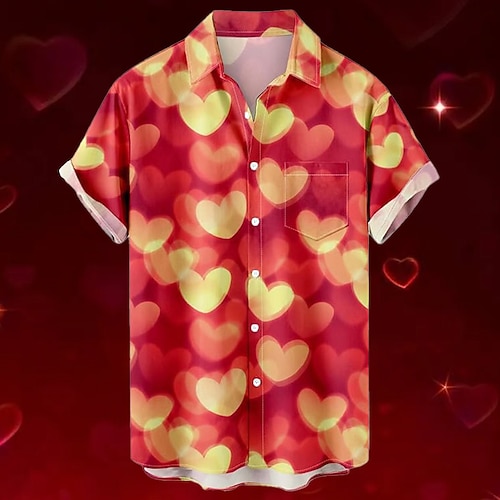 San Valentino Per uomo Romantico A cuore Colletto finto e design del vestito Camicia Camicia con Bottoni Manica Lunga Moda Casual Regalo Ferie Primavera Autunno Collo ripiegato Stampa 3D camicie con