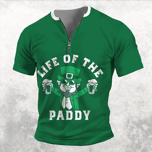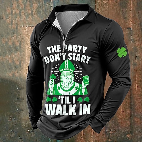 San Patrizio Per uomo Quadrifoglio Polo con zip Manica Lunga Magliette polo Bavero Casual All'aperto Abito da festa Stampa 3D Primavera Autunno Nero Verde Verde militare