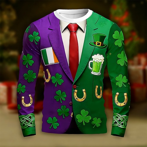 San Patrizio Per uomo Grafico Trifoglio Maglietta Maglia Henley Manica Lunga maglietta Stampa 3D Henley Camicia Moda Quotidiano Casual Casuale Ferie Uscire Nero Viola Verde Primavera Autunno