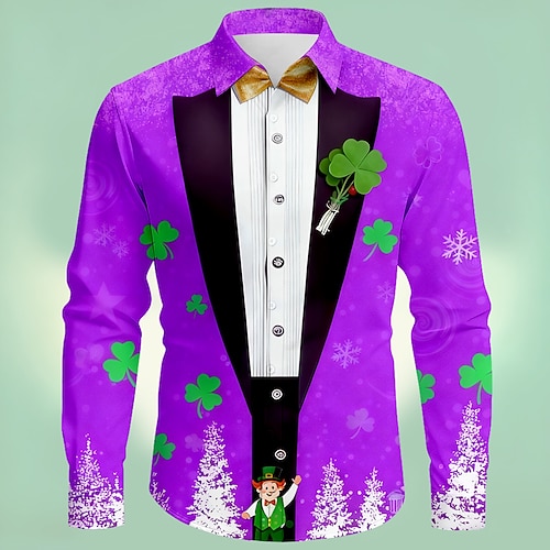 San Patrizio 2026 Blusa / Camicia Cartone animato Manga Trifoglio Irlandese Grafico per Per uomo Adulti Stampa 3D per Giorno di San Patrizio Casual Quotidiano Festival
