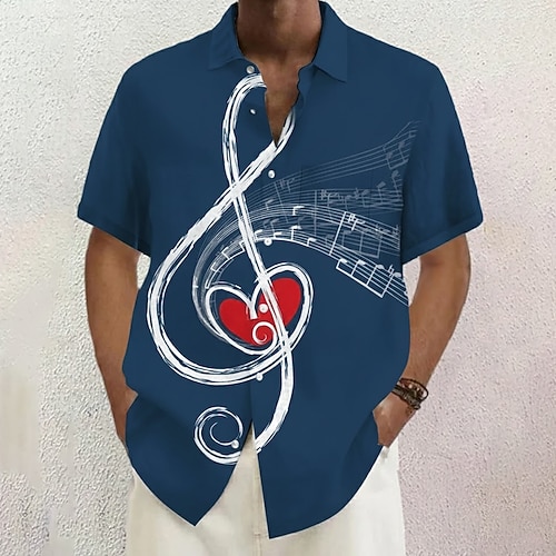 San Valentino Per uomo Note Musicali A cuore Camicia Camicia Estiva Camicia con Bottoni Manica Corta Moda Casual Regalo Ferie Estate Primavera Collo ripiegato Stampa 3D camicie con colletto Una tasca