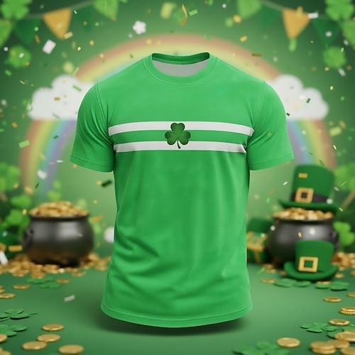 San Patrizio Per uomo Trifoglio Irlandese fortunato maglietta Manica corta maglietta Stampa 3D Camicia Informale Giornaliero Nero Blu Verde Primavera estate Abbigliamento S M L XL XXL XXXL