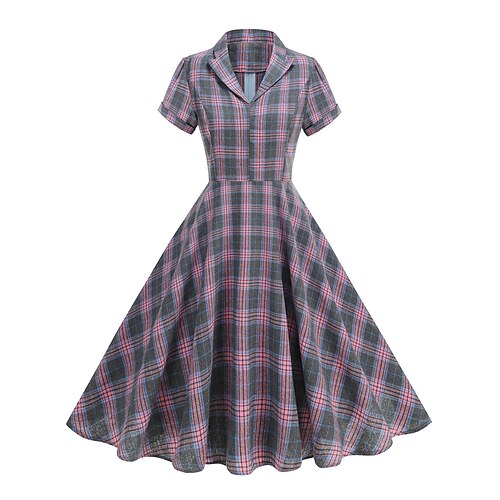 Retrò Vintage Anni 1950 Hepburn Midi Vestito Abito a trapezio Vestito Svasato Maniche corte Plaid Aderente Svasato Costume Per donna Carnevale San Valentino Casuale Ritorno a casa Festa a tema retrò