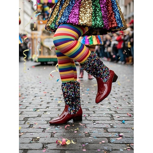 stivaletti da donna in pelle verniciata bordeaux con paillettes - stivali scintillanti in stile festival, ideali per sfilate di carnevale, feste in maschera, festival di strada e celebrazioni a tema