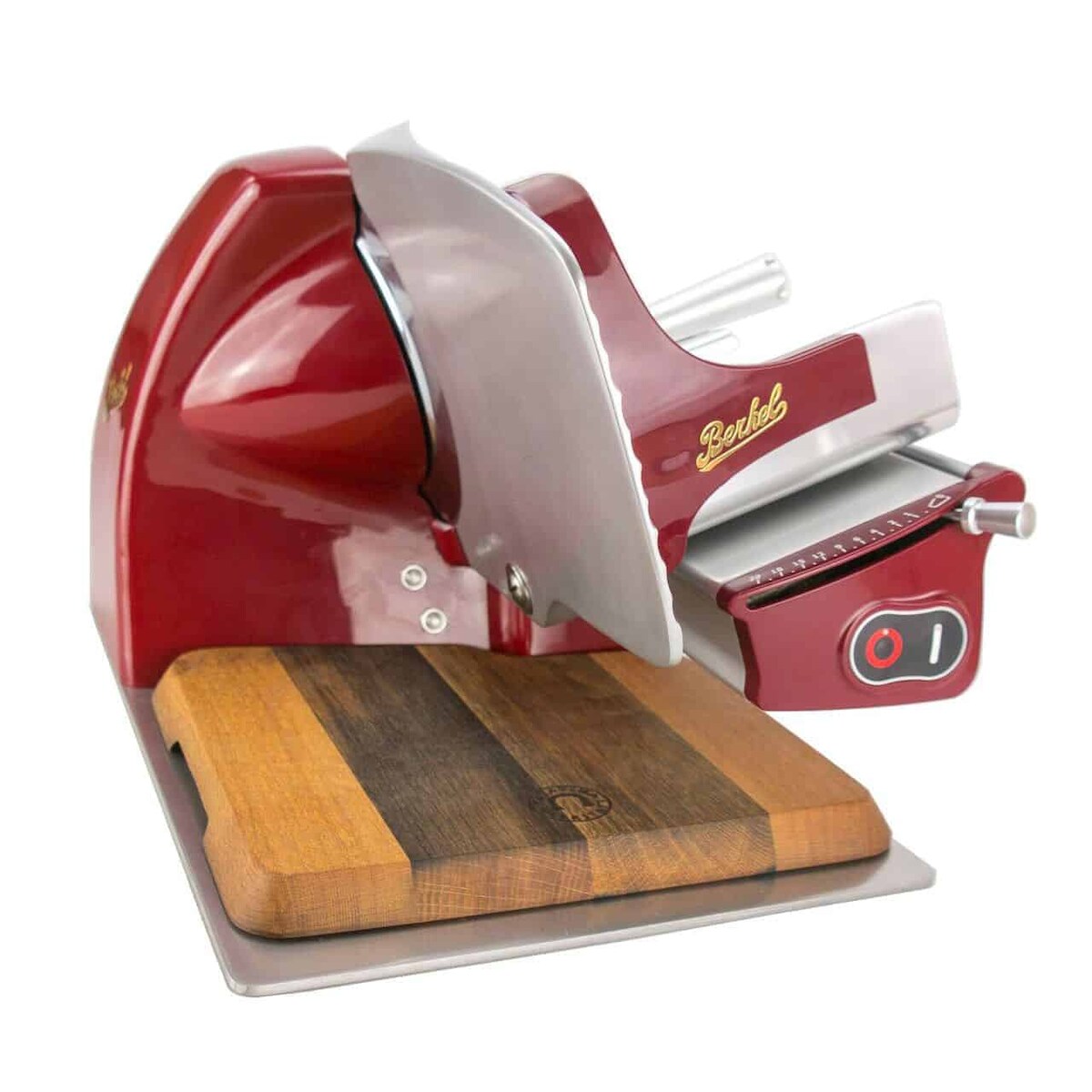 Berkel Home Line 250 Rot, Aufschnittmaschine mit passgenauem Fassholzbrett aus alten Weinfässern
