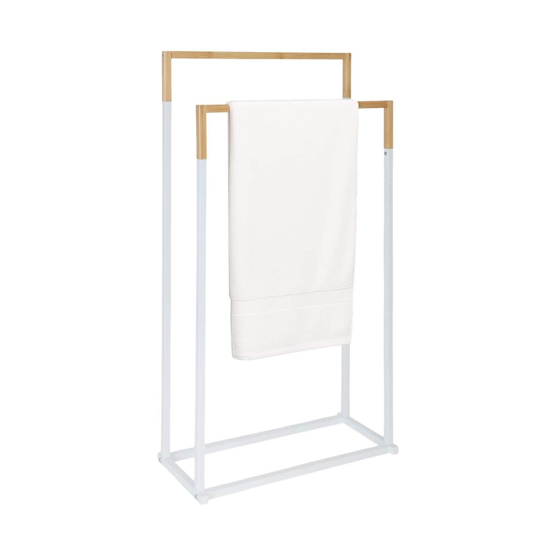 Håndklestativ i metall og bambus – 2 stenger, plassbesparende design