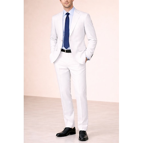 Uomo Completi in Lino Abiti da lavoro Casuale Matrimonio Bianco Rosa Primavera Estate Tuta Bavero classico Moda Quotidiano Tinta unita Vestibilità su misura 2 pezzi Monopetto Due Bottoni