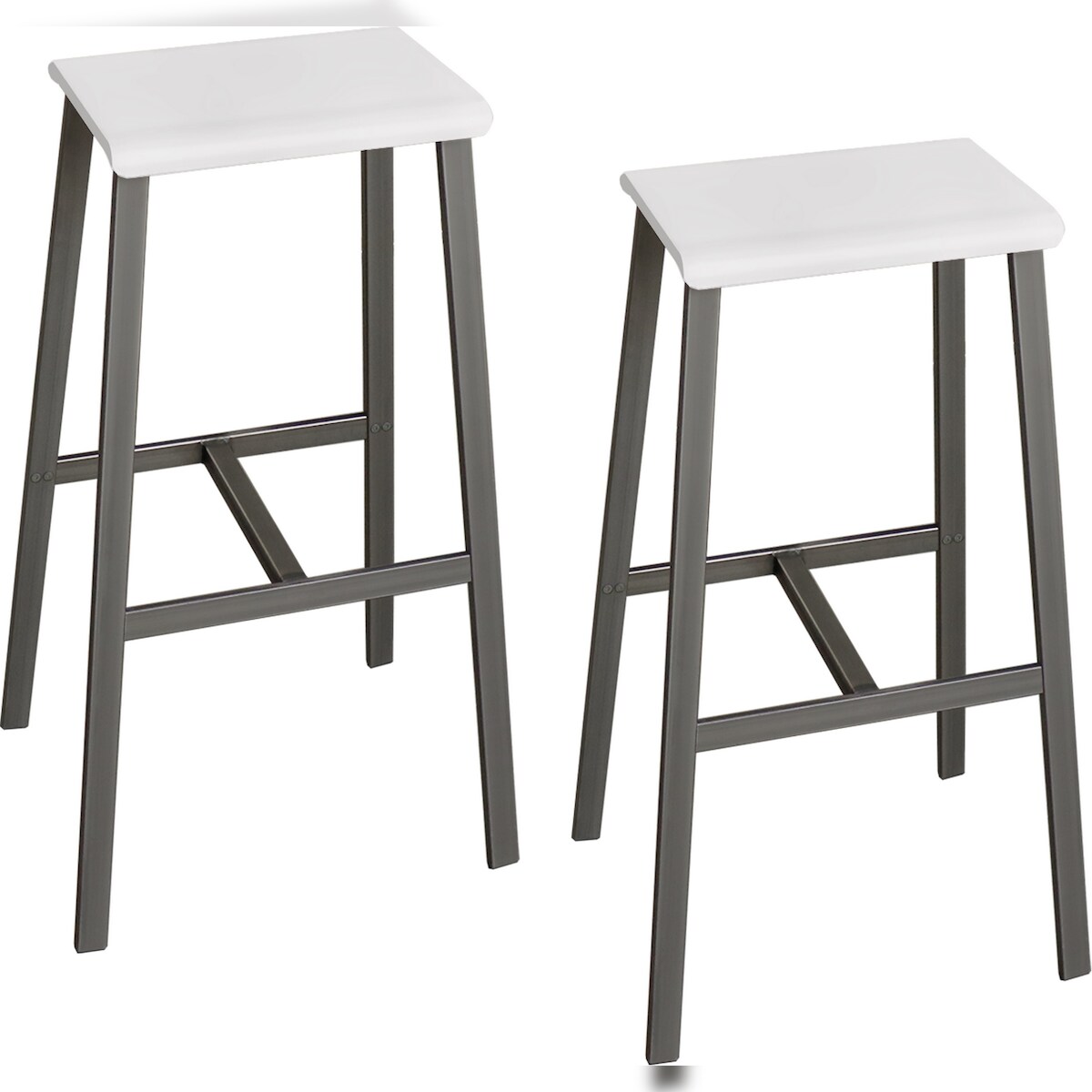 bümö Barhocker 2er Set im Industrial-Design, Barstuhl Weiß-Rohstahl, Barhocker Holz-Sitz ohne Lehne, Hocker mit Gestell aus Metall belastbar bis 120