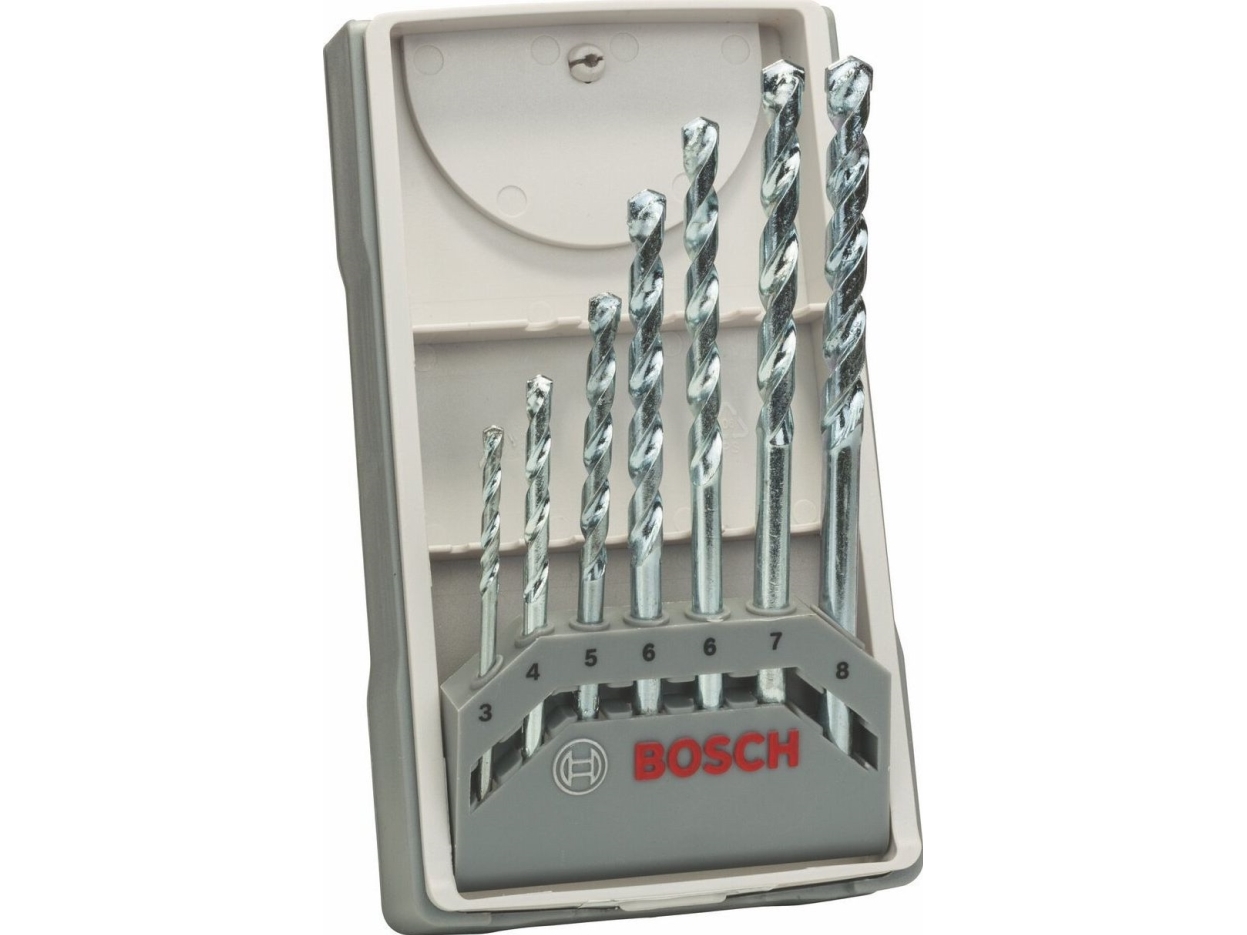 Bosch CYL-1 - Borsett - for betong, murverk, kalkstein, stein, kunstig stein - 7 deler - 5 mm, 6 mm, 7 mm, 8 mm, 4 mm, 3 mm - lengde: 75 mm, 85 mm, 100 mm, 120 mm, 60 mm