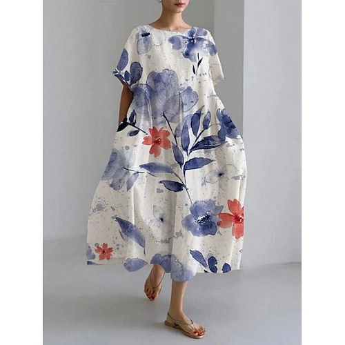 Per donna Abito Midi Vestito Casual Moda Essenziale Moderno Quotidiano All'aperto Spiaggia Vestibilità comoda Floreale Manica Corta Girocollo Blu Blu scuro Estate Primavera