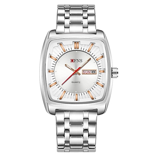 Orologio da polso da uomo al quarzo di marca OFNS, sportivo, alla moda, da lavoro, luminoso, con calendario, data, settimana, impermeabile, in acciaio e gel di silicone.