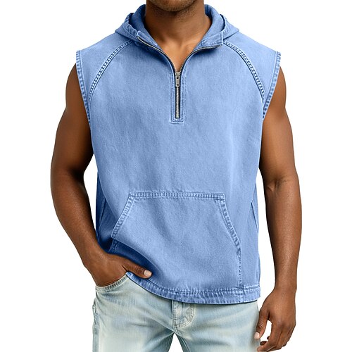Da uomo Canotta Camicia di Jeans Gilet Maglietta di cotone Senza Maniche Con cerniera Estate Primavera Semplice Retrò Vintage Casual Angosciato Con cappuccio Lavato Casuale Palestra Streetwear Nero