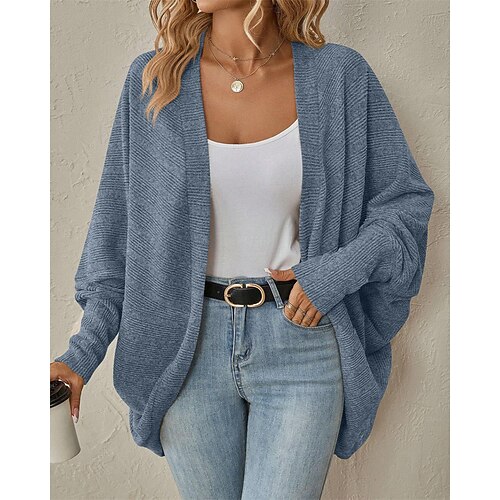 Per donna Cappotto cardigan Casual Tinta unica A Coste Aperto davanti Lavorato a maglia Manica a pipistrello Manica Lunga Top Regolari Maglia Quotidiano Rosa Blu Primavera Autunno