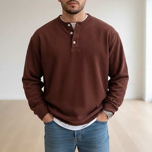 Per uomo Camicia di Velluto a Coste Maglia Henley Maglietta Manica Lunga Tinta unica Semplice Moda Designer Casual Cardigan con Bottoni Caldo Henley Casuale Quotidiano All'aperto Autunno Inverno