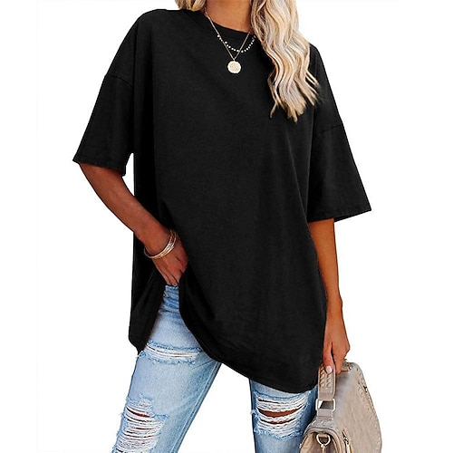 T-shirt girocollo oversize basic per abbigliamento donna top a maniche corte girocollo manica corta nuovo colore tinta unita