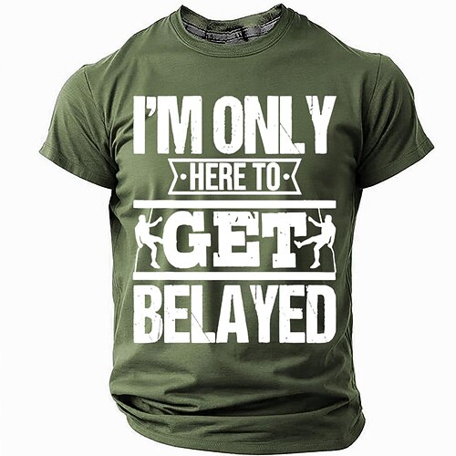 T-Shirt Grafica per Uomini Divertente 'Sono Solo Qui Per Essere Assicurato' Stile di Vita di Alpinismo Maniche Corte T-Shirt