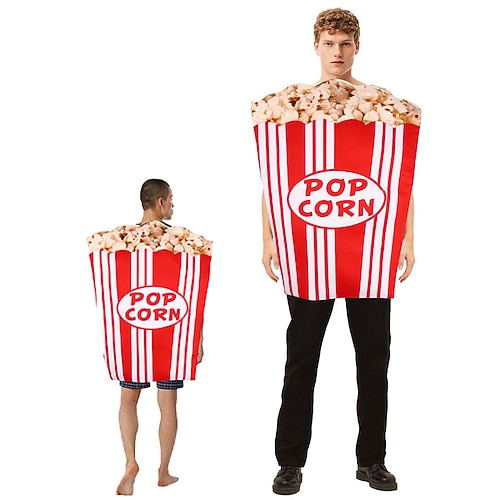 Costume di Carnevale 2026 buongustaio Popcorn Carnevale Costume di fantasia Costume tutina Bianco e Rosso Adulti Per uomo Per donna Unisex Halloween Carnevale Feste Performance Abbigliamento da Casa