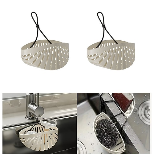 Ciotola e scolapiatti con corda sospesa a ventosa 2 in 1, contenitore per spugne semicircolare da parete con fori di drenaggio, installazione senza fori, consente di risparmiare spazio sopra il