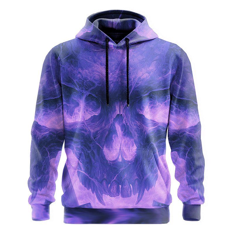 Men's Skull Hellfire Flames 3D Flame Hoodies Sweatshirt Punk Exaggerated Gothic Casual Long Sleeve Crew Neck Hooded Club Streetwear Yellow Blue Purple Green Drawstring Fall Winter Designer S M L XL