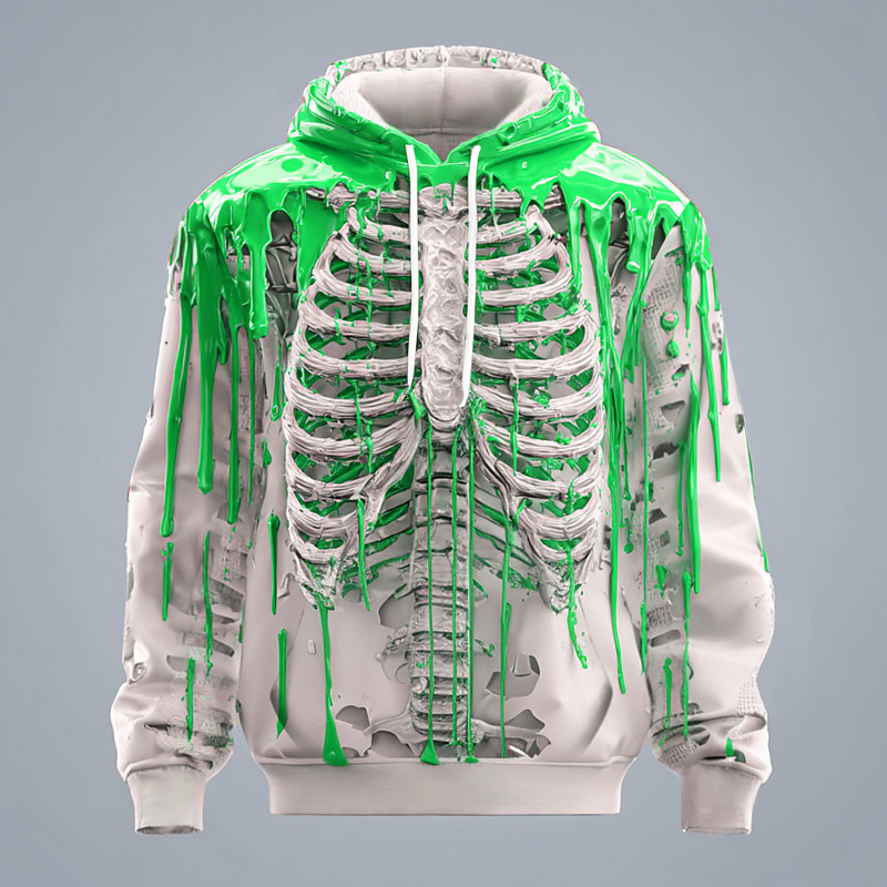 Men's 3D Skeleton Hoodie Sweatshirt Punk Exaggerated Gothic Casual Long Sleeve Crew Neck Hooded Club Streetwear Lake blue Red Blue Purple Orange Drawstring Fall Winter Designer S M L XL XXL XXXL