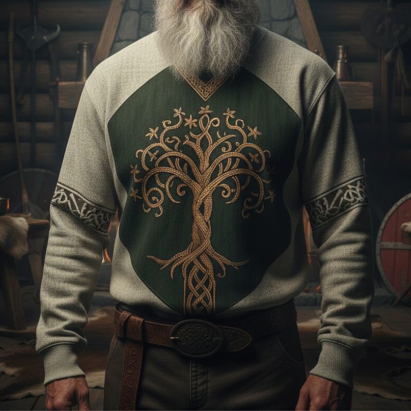 Men's Sweatshirt Blue Khaki Crew Neck Tree Of Life Yggdrasil Celtic Knot Print Casual Daily Holiday Vintage Viking Fall Winter Clothing Apparel Hoodies Sweatshirts