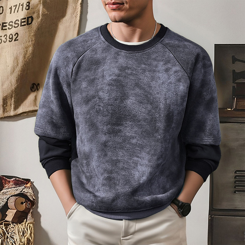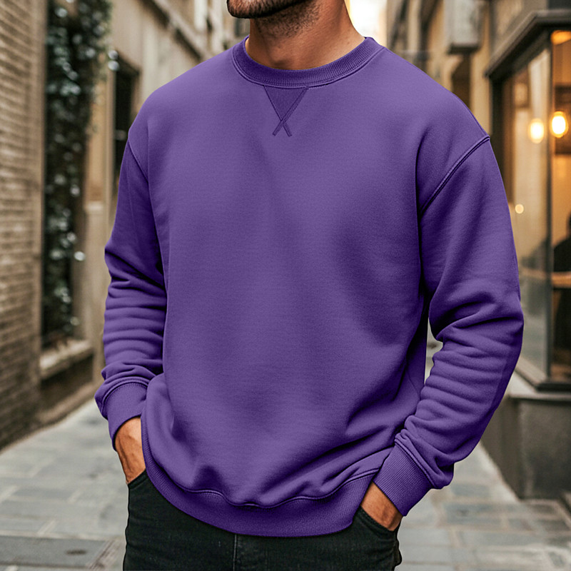 Men's Sweatshirt Fleece Sweatshirt Denim Blue Black Wine Navy Blue Dark Gray Crew Neck Plain Sports Outdoor Daily Holiday Polyester Streetwear Basic Casual Winter Clothing Apparel Hoodies
