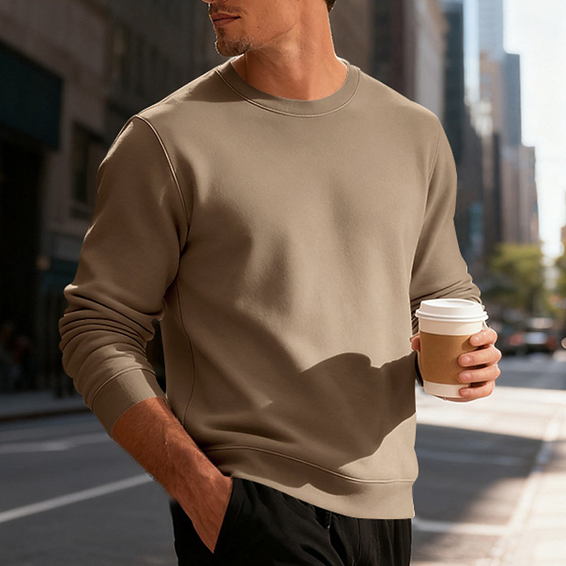 Men's Sweatshirt Fleece Sweatshirt Apricot Black Army Green Red Navy Blue Crew Neck Plain Sports Outdoor Daily Holiday Polyester Streetwear Basic Casual Fall Winter Clothing Apparel Hoodies