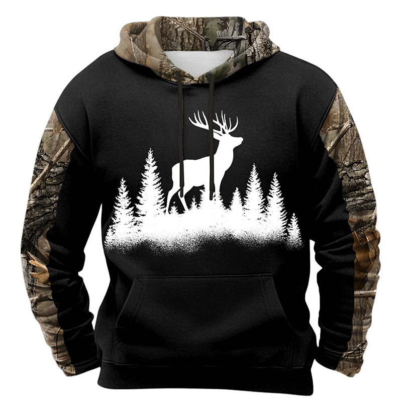 Men's Deer Hoodie Sweatshirt Fashion Classic Crew Neck Outdoor Hunting Black Brown Khaki Brown 2 Drawstring Fall Winter Designer S M L XL XXL XXXL