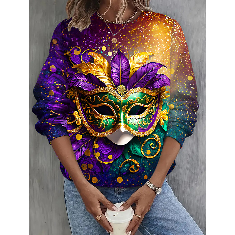 Carnival Women's Pullover Sweatshirt Hoodies Graphic Geometric Fashion Casual Long Sleeve Crew Neck Regular Tops Street Dailywear Print Yellow Red Purple Spring Fall