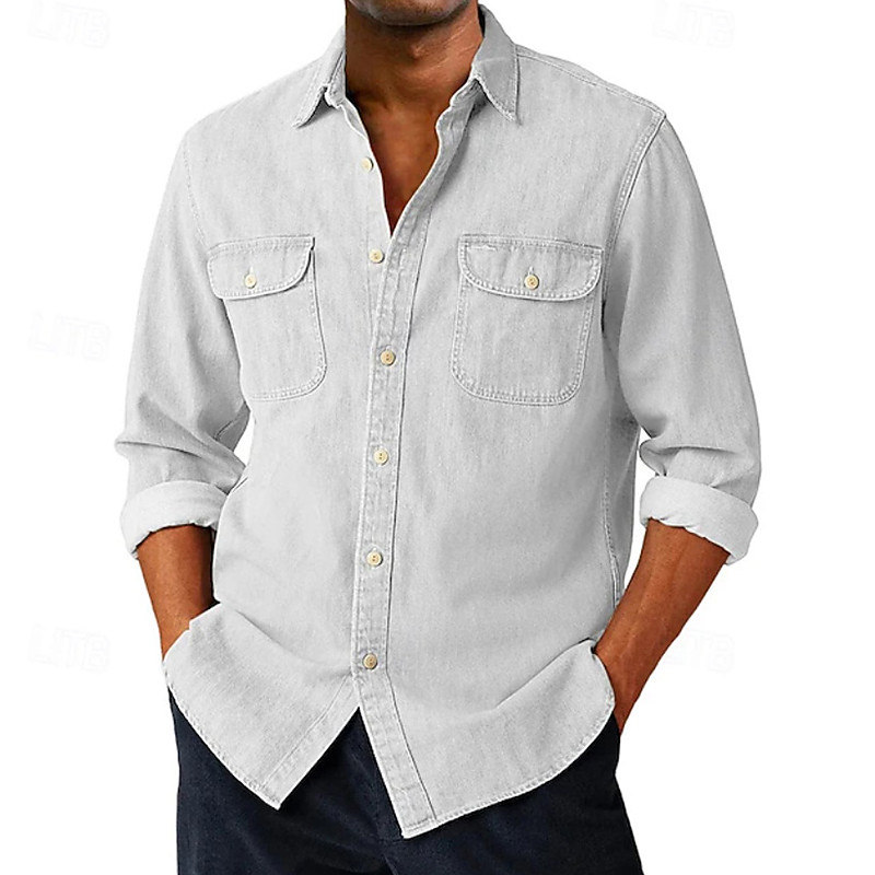 Men's Shirt Casual Shirt Button Up Shirt Cargo Shirt Acid Wash Shirt Blue Black White Purple Green Long Sleeve Plain Lapel Daily Outdoor Clothing Apparel Fashion Modern Casual Comfortable
