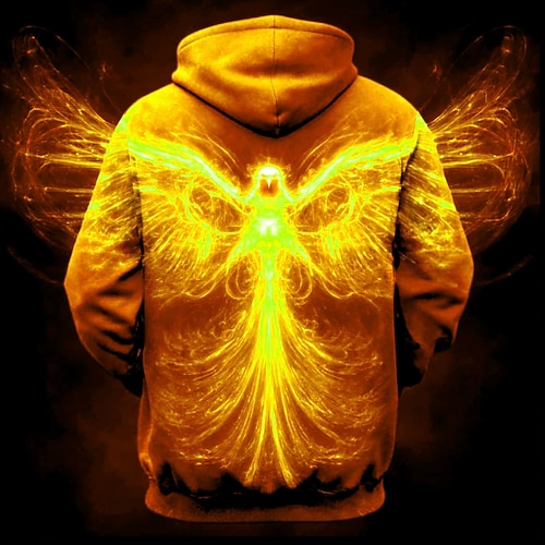 Per uomo 3D Fenice Felpa con Cappuccio Felpa Cool Festa Manica Lunga Girocollo Club Abbigliamento casual alla moda Giallo Arancione Coulisse Autunno Inverno progettista S M L XL XXL XXXL