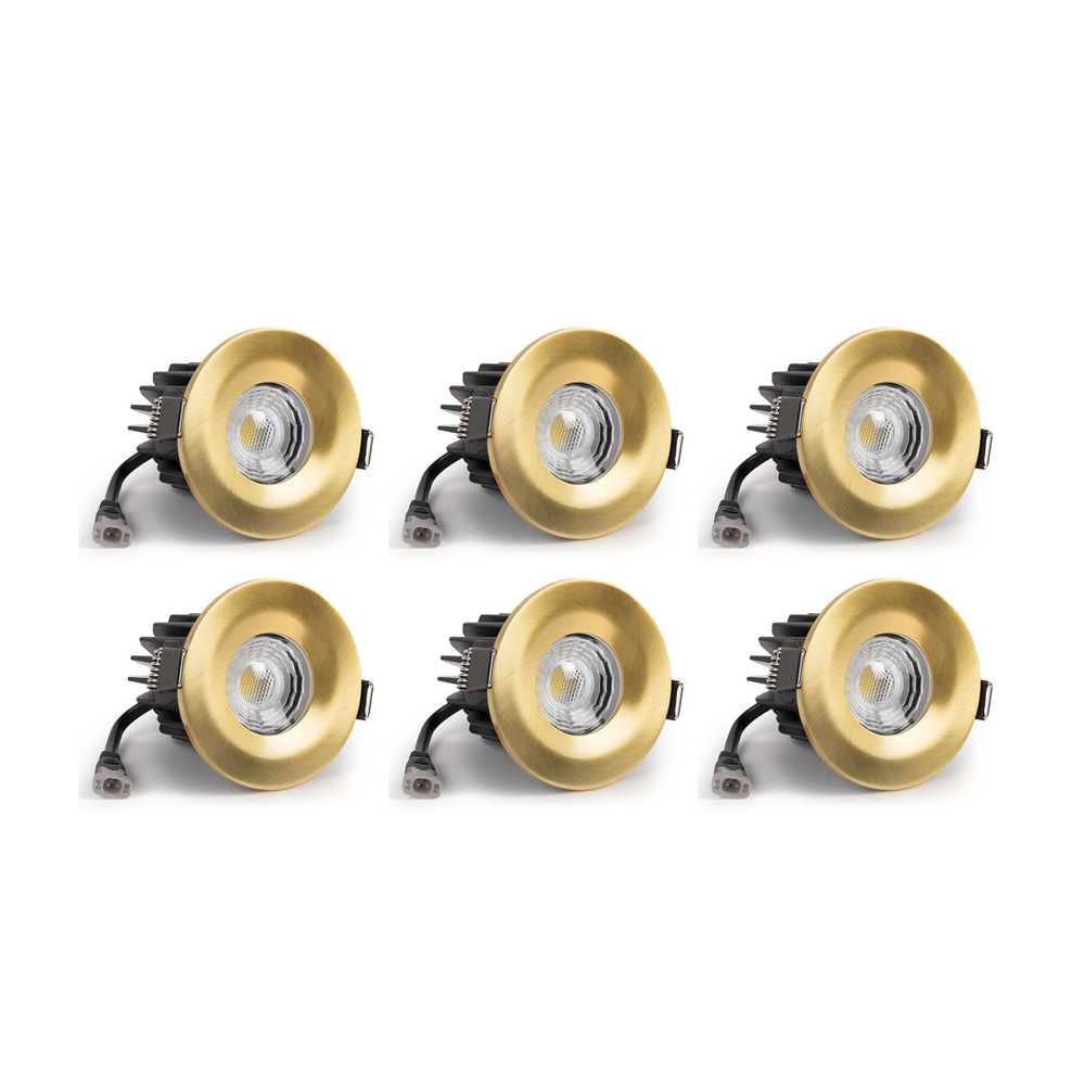 6 Pack - Soho Lighting Brushed Gold LED Downlights - Fire Rated - Fixed - IP65 - CCT Switch - High CRI - Dimmable
