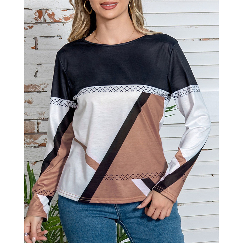 Women's Blouse Dressy Tops Geometric Color Block Plain Vintage Tropical Ladies Long Sleeve Crew Neck Regular Tops Work Daily Holiday Ruched Patchwork Draped Red Blue Purple Green Khaki Fall Winter