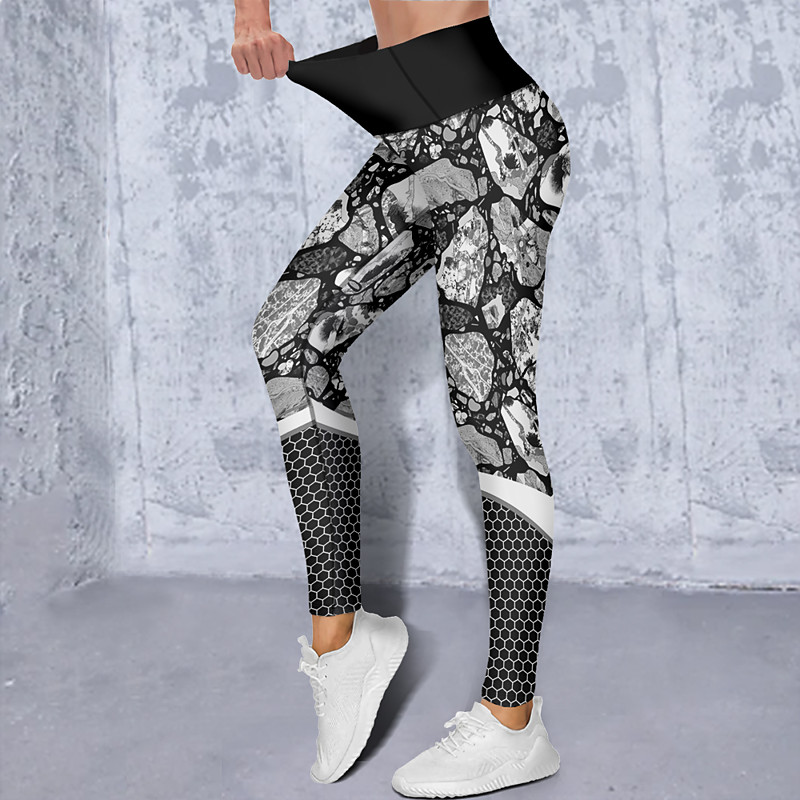 Women's Leggings Sports Gym Leggings Yoga Pants Spandex Green Gray Dark Green Cropped Leggings Geometry Tummy Control Butt Lift Clothing Clothes Yoga Fitness Gym Workout Running / High Elasticity