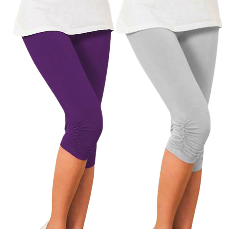 2 Pack Women's Capri Leggings Workout Pants High Waist Bottoms Tummy Control Butt Lift Violet White Black Yoga Fitness Gym Workout Sports Activewear High Elasticity Athletic Athleisure Wear